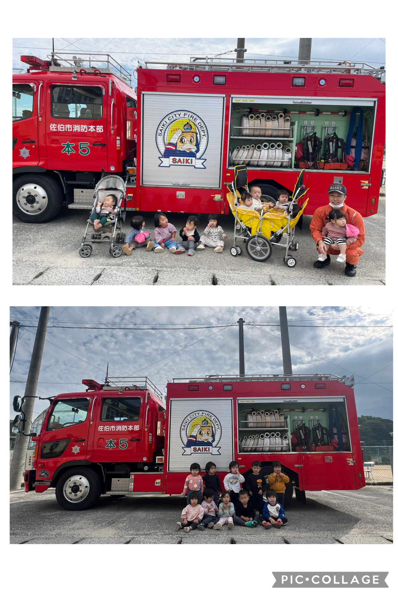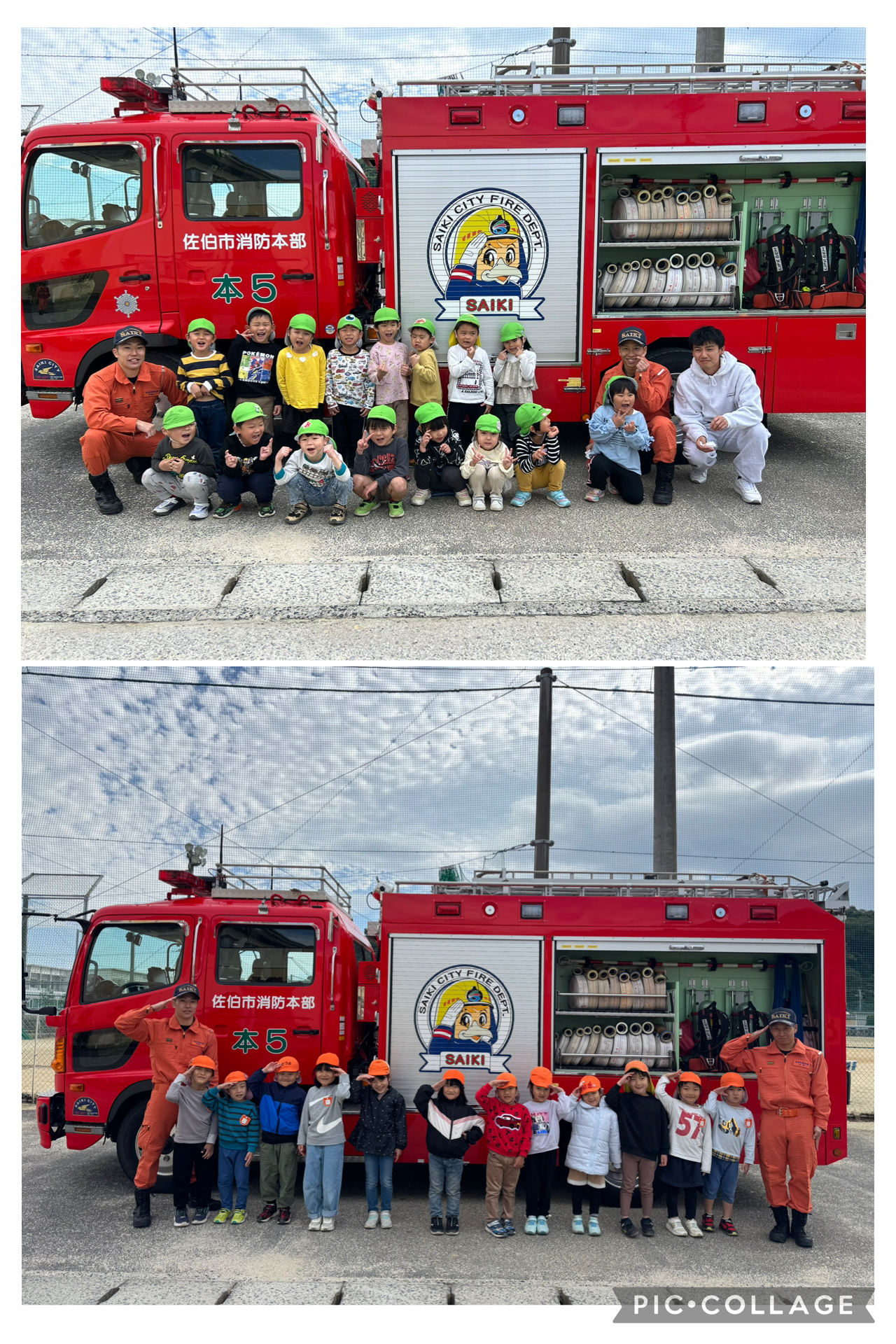 HOME 避難訓練・消化訓練 2025年11月21日 避難訓練・消化訓練 火災の避難訓練を行いました。 今回は消防署の方々が来園し、一緒に訓練をしてくれました。 「おはしも」の約束を皆んなで確認した後、こども園の職員が消化器の使い方を教わり、実際に消化訓練をしました。 最後は、かっこいい消防車を見て記念撮影をし、こどもたちも喜んでいましたよ! 前の記事 次の記事