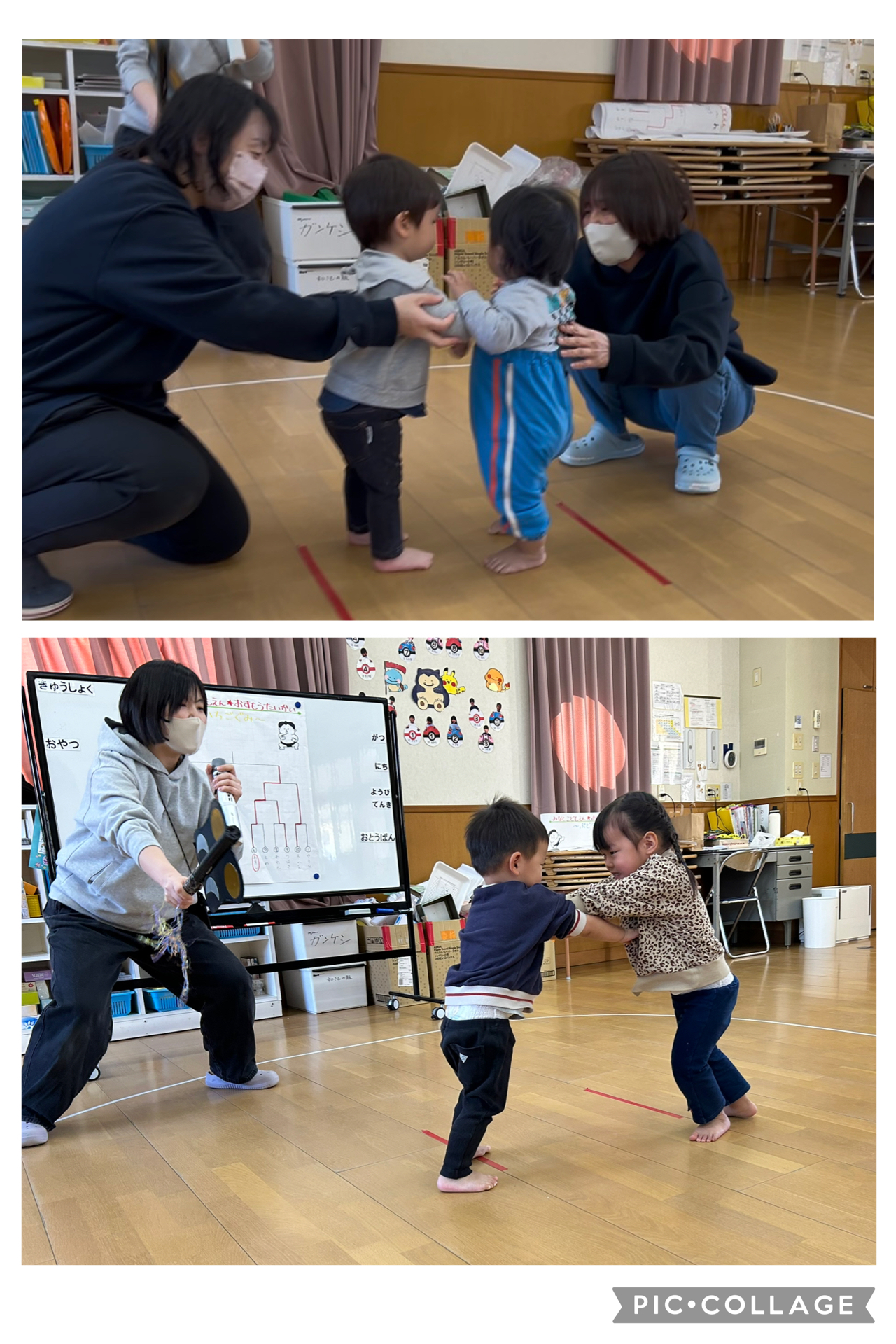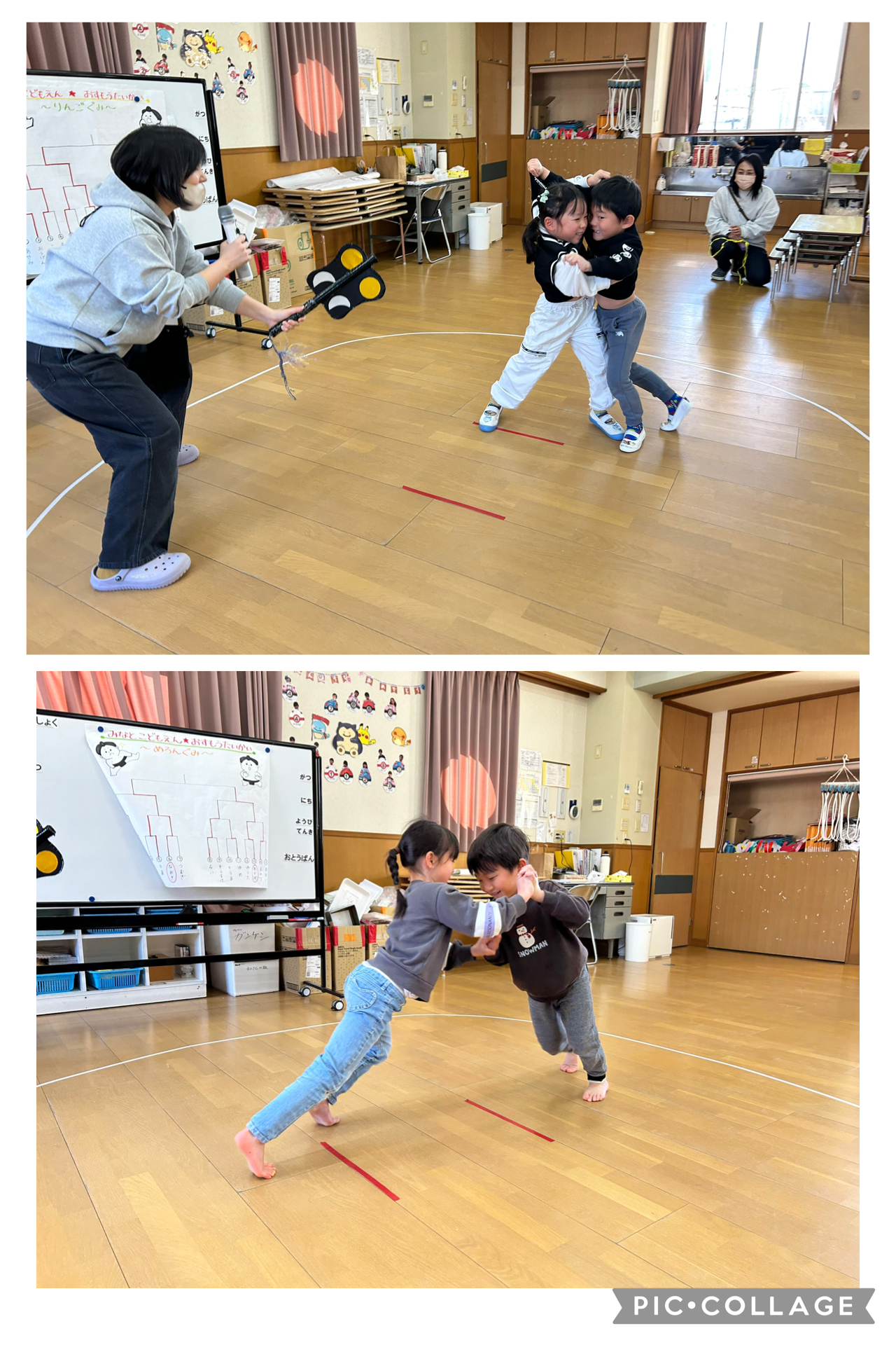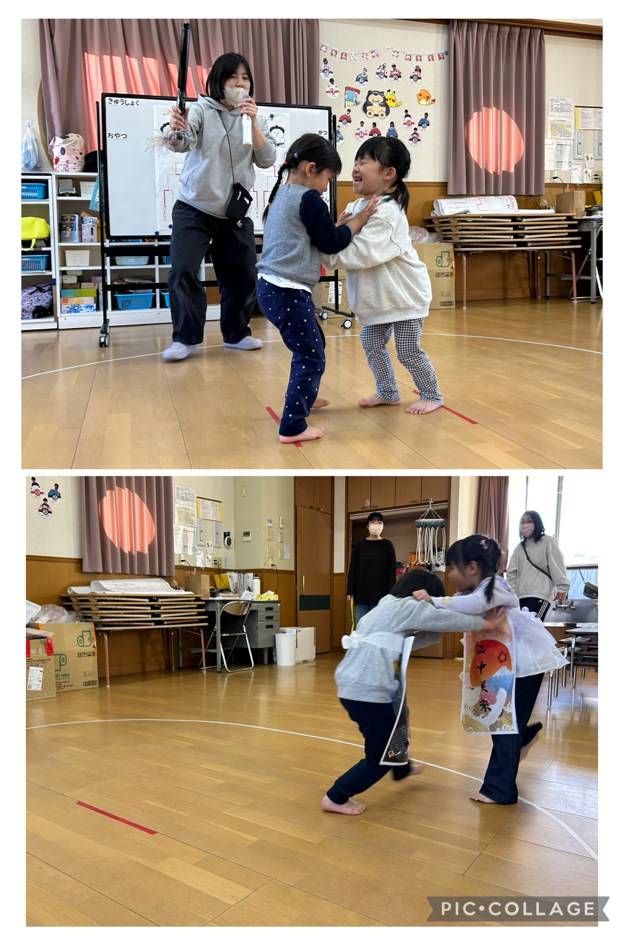 HOME 1月の誕生会 2026年2月2日 1月の誕生会 今日は1月の誕生会で、4名のお友だちのお祝いをしましたよ! その後、みんなでお祝いをし、相撲大会をしました。 各クラスでトーナメント戦をしていたので、今日は決勝戦を行いました。決勝戦ということで、応援にも力が入り、どの対決も白熱の戦いでした。優勝、準優勝のお友だちは、保育者手作りの可愛いメダルをもらったり、みんなから拍手と「おめでとう」の声をもらったり、とても嬉しそうでしたよ! 前の記事 次の記事