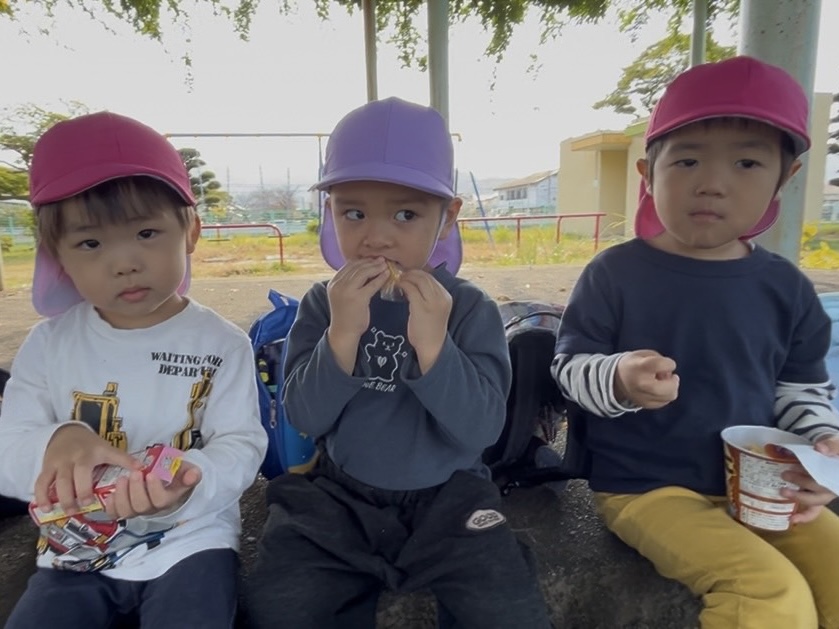 公園でお菓子を食べたり、園庭でおにぎりを食べたり、天気もよく、暖かい日だったので、それぞれ各クラスで遠足を楽しみ、楽しい思い出ができた子どもたちでした♪
